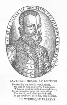 He studied the humanities in Paris under Muretus, and law at Orléans under Anne de Bourg. He began his career as a Huguenot, but afterwards adopted a mild Catholicism. He was wounded at the Battle of Arnay-le Duc in 1570, and retired to his estate at Bondaroy, where he wrote a political pamphlet entitled Histoire abrégée des singeries de la ligue. His chief poem is a satire on the follies of court life, Le Courtisan retiré; he also wrote a political poem, Le Prince Nécessaire. But his fame rests on his achievements in drama. In 1572 appeared the tragedy of Saül le furieux, with a preface on L'Art de la tragédie. He wrote, not for the general public to which the mysteries and farces had addressed themselves, but for the limited audience of a lettered aristocracy. He therefore depreciated the native drama and insisted on the Senecan model. He objected to deaths on the stage on the ground that the representation is unconvincing.[1]
