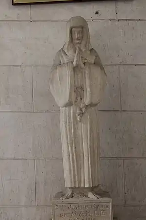 Jeanne-Marie de Maille (14 April 1331 − 28 March 1414) was a French Roman Catholic and a member from the Third Order of Saint Francis.[1] Maille was born to nobles and married a nobleman herself though remained childless since she decided to remain chaste with spousal permission. The pair lived together until her husband died during a conflict and she became a Franciscan to dedicate herself to the care of the poor and ill since she had lost all with the death of her husband.[2]