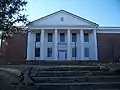 The vernacular school building was expanded on the east and west sides in 1915 and the columns added to the front, giving is a Neoclassical architecture appearance.[2]