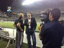 Jeffrey Hayzlett filming on the Seattle Sounders FC sidelines for his Bloomberg Television show "C-Suite with Jeffrey Hayzlett"