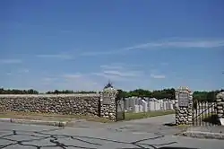 The Jewish Cemetery of New Bedford, Massachusetts is located in the far north of the city, on Old Plainville Road, just north of New Bedford Regional Airport. The cemetery was established in 1898 as the principal burying ground for two congregations, Chesed Shel Emes and Ahavath Achim. It is the second Jewish cemetery in the city; the first, a small section of Peckham West Cemetery, was filled up in the 1890s. The developed portion of the cemetery lands is about 13 acres (5.3 ha), with another 24.5 acres (9.9 ha) that is undeveloped forest. The cemetery land is now owned by a number of organizations: the Tifereth Israel congregation owns about 19 acres (7.7 ha), Ahavath Achim owns 5.25 acres (2.12 ha), and two small parcels are owned by other organizations. Entrances to the cemetery are marked by stone posts with bronze plaques.[1] There is also the Temple Sinai section that sits in the grounds of the New Bedford airport that was accessible from the Old Plainville Road but is now blocked off.