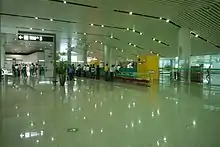 The airport covers an area of 55,000 square metres (590,000 square feet) and 12 jetways[8] with the passenger terminal divided into two, with the domestic terminal on one side and the international on the other. The whole terminal has an annual traffic capacity of 4.5 million passengers.[9] A second check-in terminal has also been created outside Shantou Railway Station, with bus connections to the airport.[10][11] In 2017, the airport was scheduled to undergo an expansion to extend the length of the runway from 2,800 to 3,200 metres (9,200 to 10,500 ft) in order to upgrade it to a code 4E runway which completed August 2019 along with construction of a transfer centre for the Chaoshan Railway Station.[12] The railway station serves two rail lines: the Xiashen line and the Meishan (Meizhou-Chaoshan) line, which was expected to be completed by the end of 2017.[13]