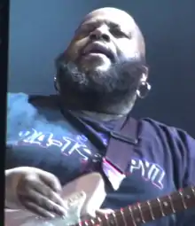 Jimi Hazel is an American guitarist, who was born in the Bronx, New York City. He gets his name from his guitar idols, Jimi Hendrix and Eddie Hazel.[1] He was childhood friends with Ronny Drayton,[2] who joined the group Hazel founded, 24-7 Spyz. In 2009, Hazel formed a supergroup with Doug Pinnick of King's X, and members of Fishbone.[3] In April 2002, he released a solo album, 21stCenturySouthBronxRockStar.[4][5]