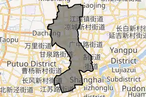 The district borders the Hongkou District to the east, Huangpu District to the east and south, Putuo District to the west, Baoshan District to the north and Changning District to the west.