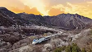 The Beijing–Baotou railway or Jingbao railway (simplified Chinese: 京包铁路; traditional Chinese: 京包鐵路; pinyin: Jīngbāo Tiělù) is an 833 km (518 mi) railway from Beijing to Baotou, Inner Mongolia, functioning as an important route in North China. It was the first railway in China designed and built by Chinese. It passes through a famous section of the Great Wall at Badaling. It is now largely paralleled by Beijing–Zhangjiakou intercity railway and Zhangjiakou–Hohhot high-speed railway.