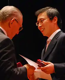 During July 2006, Wang performed in the XV Festival Internacional de Piano held on the Canary Islands.[3] One month later, he won 3rd prize at the 2nd Panama International Piano Competition.[2][4][5] In summer of 2007, as a scholarships receiver in both Mannes International Keyboard Festival and the Music Day Festival in the Netherlands, he attended master classes and given concerts around the Netherlands and the United States.