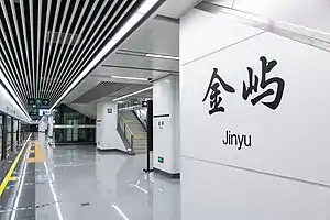 Jinyu Station (Chinese: 金屿站; pinyin: Jīnyǔ zhàn; Fuzhounese: Gĭng-sê̤ṳ) is a metro station of Line 2 of the Fuzhou Metro. It is located near the intersection of Guobin Avenue, Qishan Avenue and Xiyuangong Road, Minhou County, Fuzhou, Fujian, China. It started operation on April 26, 2019.[1][2]