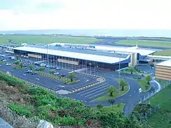 Ponta Delgada - João Paulo II Airport (IATA: PDL, ICAO: LPPD), named after Pope John Paul II, is an international airport located on the island of São Miguel, in the Portuguese archipelago of the Azores. Situated 2 km (1.2 mi) west of the city centre of Ponta Delgada, it is the primary (and busiest) airport in the Azores, as well as the fifth largest infrastructure managed by ANA Aeroportos de Portugal. The terminal was finished in 1995; by 2005 the airport served a total of 873,500 passengers.[1] It has scheduled domestic flights to all islands of the Azores, plus Madeira and the mainland, namely (Lisbon, Porto and Faro). João Paulo II Airport also accommodates international flights to and from Europe and North America. The airport is the major hub for the SATA Group of airlines, which includes both inter-island SATA Air Açores and international Azores Airlines,[2] and since April 2015 as a base for Ryanair.[3]
