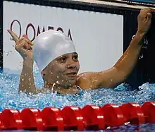 Joana Maria Jaciara da Silva Neves Euzébio (born on 14 February 1987)[1] is a Paralympic swimmer from Brazil. She competed at the 2012, 2016, and 2020 Paralympics and won two silver and three bronze medals.[2] In 2015, she became the first Brazilian woman to win an individual gold medal at the IPC World Championships, which she has done in the 50 m freestyle.[3]