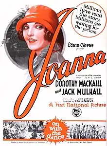 Joanna is a 1925 American silent romantic comedy film produced and directed by Edwin Carewe and distributed by First National Pictures. The film was based on the short story "Joanna, of the Skirts Too Short and the Lips Too Red and the Tongue Too Pert" by Henry Leyford Gates.[1] The film starred Dorothy Mackaill and Jack Mulhall, and it also marked the first motion picture appearance of Mexican actress Dolores del Río.