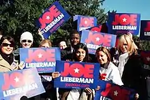 The 2004 presidential campaign of Joe Lieberman, the long-time United States Senator from Connecticut and the vice-presidential nominee under Al Gore in the previous election, began on January 13, 2003, when he announced his intention to seek the Democratic nomination as a candidate in the 2004 presidential election. Describing his Presidential hopes, Lieberman opined that his historically hawkish stance would appeal to voters. Prior to his defeat in New Hampshire, Lieberman famously declared his campaign was picking up "Joementum".[1] On February 3, 2004, Lieberman withdrew his candidacy after failing to win any of the five primaries or two caucuses held that day. He acknowledged to the Hartford Courant that his support for the war in Iraq was a large part of his undoing with voters.[2]