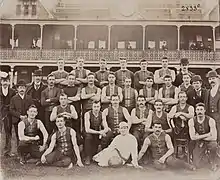 For the 1888 season, Wilson was made captain of the Launceston Grammar School football team.[20] He also became a leading player for the Launceston Football Club.[21] Wilson kicked two of his team's three goals in a school match against Horton College,[22] and was named in Launceston's best players in several games, including matches against South Launceston and City that counted towards the premiership.[23][24][25] In a match that was to decide the premiership, against South Launceston, Wilson put in a creditable performance. The game ended in a draw, which left the teams even on the ladder, and a subsequent game was scheduled for two weeks later.[26] In that match, Wilson kicked one of Launceston's five goals as they ran out two-goal victors to win their first Northern Tasmanian Football Association (NTFA) premiership.[27] He was named in Launceston's best players for the match by the Launceston Examiner.[28] For the following cricket season, Wilson moved to play with St. Leonards.[29]