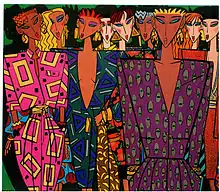Joel Hirsch Resnicoff (October 23, 1948 – December 28, 1986) was an American artist and fashion illustrator, who incorporated expressionistic art into commercial fashion illustrations, stating his belief that "commercial art is the art of the century."[1] His work did not fit easily into any one category, and "the figures in his amusing illustrations defy stereotype and are posed in unexpected ways."[2] Those figures reflected a mixture of cultures, with viewers seeing something familiar to their own background, mixed with something more distant: a combination of the "girl next door," and "the girl on the other side of the world." So, for example, a Japanese work describes "the influence of black African sculptures," mixed with a more Japanese look characterized by "lips like cherry blossom petals, and almond-shaped eyes."[3] His work captured the new impact of multiculturalism on art and the "standards of beauty" of the seventies,[4] and along with artists such as Andy Warhol helped "blur the line between commercial art and fine art."[5]