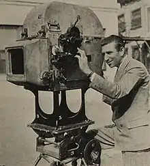 In 1921, Arnold was elected to the board of governors of the American Society of Cinematographers.[14] With the advent of sound pictures in the late 1920s, Arnold was chosen to sit on a panel of industry experts in the fields of film engineering, projection, and cinematography to discuss and establish screen proportions and other issues which arose with sound pictures. The experts were chosen from four organizations: the Motion Pictures Arts and Sciences technicians, the Society of Motion Picture Engineers, the American Projection Society, and the American Society of Cinematographers.[15] Through 1925 Arnold shot every film Viola Dana was in at Metro.[16] This ended with Dana's departure from Metro in 1925 in order to go freelance. After her departure, Arnold was given a long-term contract by MGM, where he had been since they opened their west coast studios in 1916.[17] That year Arnold filmed The Big Parade, which won the Photoplay Magazine Medal for best film of the year. The medal is considered the first significant annual movie award, prior to the establishment of the Oscars.[18] 1927 saw the development of the "Arnold light", an incandescent light which replaced the arc lights which was used prior.[7] In 1929 Arnold invented a new type of "sound-proof" camera, to reduce the noise in filming sound productions. Its first use was in Lionel Barrymore's The Unholy Night, although Arnold was not the cinematographer on that film.[19] In 1929 Arnold invented the "bungalow", a mobile camera covering which freed cameramen from the restrictive camera booths which were necessitated by sound film photography.[20][21] 1929 would be Arnold's last year behind the camera. In 1930 he joined MGM's administration as head of their sound camera department, later to be called simply the camera department.[22][23]