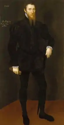 He obtained from the crown a grant of the mastership of the game in Enfield Chase and park, with the office of steward and ranger of the manor of Enfield. Accompanying Elizabeth on her visit to the University of Cambridge in 1564, he was created M.A.[4] In or about 1568 the queen granted him a lease in reversion of the castle and manor of Allington, Kent, and he also had an estate at Otterden. He bought Maidstone Palace and had work done to the front of the building.[5] His death appears to have occurred about July 1595. He was aged about 88; he and his wife Margaret are buried in Maidstone church.[6]