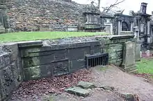 Medina died in Edinburgh on 5 October 1710. He was buried in Greyfriars Kirkyard in the centre of the city.[6] The grave is a solid enclosed vault on the east side, now appearing half-sunken, adjacent to the steps leading to the northern section. The engraver, William Howison, is buried in front of the vault.