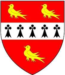 Arms of Covert: Gules, a fess ermine between three martlets or[1]
