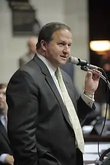 John J. Diehl, Jr. (born August 28, 1965) is an American attorney and a Republican former member of the Missouri House of Representatives.[1] He represented the 89th district, which includes Ballwin, Chesterfield, Country Life Acres, Crystal Lake Park, Des Peres, Frontenac, Huntleigh, Kirkwood, Ladue, Manchester, and Town and Country, from 2009 to 2015.[1] Prior to redistricting he represented the 87th district from 2009-2012. Diehl was elected Speaker of the Missouri House of Representatives in 2013[2] and took office in January 2015. Diehl resigned on May 14, 2015 after a scandal came to light regarding inappropriate messages exchanged with an intern.[3][4]
