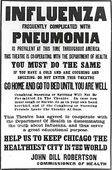 Robertson oversaw the city's health department during the 1918 Spanish flu pandemic.[13] Ultimately, 8,500 Chicago residents died during the pandemic.[14]
