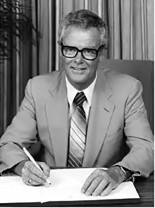 In 1974, Yardley joined the National Aeronautics and Space Administration (NASA) as its associate administrator for manned space flight. This was a difficult time for manned space flight, with the transition from expendable launch vehicles to the reusable Space Shuttle. Yardley left NASA after the first successful flight of the Space Shuttle in 1981, and returned to St. Louis and McDonnell-Douglas as president of McDonnell Douglas Astronautics, a position he held until he retired in 1989.[1] He became known for "Yardley's Law": "Pretty is what works",[2] his response to someone who said that the Mercury spacecraft looked like a waste paper bin.[2] Speaking about his anxiety before the inaugural launch of the Space Shuttle, he said: "The things that you have to be careful about are the unknowns, things that have never happened before. A new engineering gremlin could crawl out of the woodwork, one nobody could have predicted."[2]