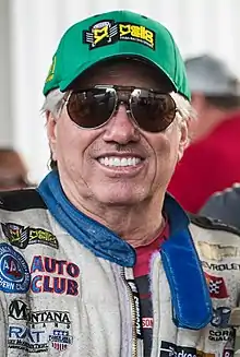 John Harold Force (born May 4, 1949 in Bell Gardens, California) is an American NHRA drag racer. He is a 16-time NHRA and 1 time AHRA Funny Car champion driver and a 21-time champion car owner. Force owns and drives for John Force Racing (JFR). He is one of the most dominant drag racers in the sport with 155 career victories.[6] He graduated from Bell Gardens High School and briefly attended Cerritos Junior College to play football.[7] He is the father of drag racers Ashley Force Hood, Brittany Force, and Courtney Force. His oldest daughter Adria Hight is the CFO of JFR.