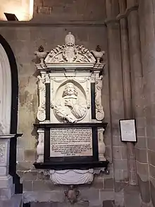 At the Restoration he was made Bishop of Exeter; he was elected to the See on 3 November 1660, confirmed 17 November,[5] and consecrated a bishop on 2 December 1660. He immediately began to complain to Edward Hyde, 1st Earl of Clarendon, of the poverty of the See, and based claims for a better benefice on a certain secret service, which he explained in January 1661 to be the sole invention of the Eikon Basilike, The Pourtraicture of his sacred Majestie in his Solitudes and Sufferings, put forth within a few hours after the execution of Charles I as written by the king himself. To which Clarendon replied that he had been before acquainted with the secret and had often wished he had remained ignorant of it. Gauden was advanced in 1662, not as he had wished to the See of Winchester, but to Worcester. He was duly elected to the See of Worcester on 23 May and that election was confirmed on 10 June 1662. He died on 20 September[1] the same year: his enemies said that he had died of chagrin at not getting the see of Winchester. His widow died in 1671: Samuel Pepys, a close friend of John's brother Sir Denis Gauden, the Navy Victualler, praised her charm and conversational skills.