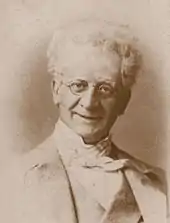 In 1889 Hare resumed a managerial career, taking charge of the new Garrick Theatre, built for and owned by W. S. Gilbert. The cost of building the theatre had been unexpectedly high, with the result that Hare had to pay a substantial annual rent of about £4,000 for his tenancy.[38] He opened on 24 April 1889 with Pinero's The Profligate, in which he played the part of Lord Dangars. The play received mixed reviews but ran for seven months.[39] Two other Pinero plays followed during Hare's tenure: Lady Bountiful (1891), and The Notorious Mrs Ebbsmith (1895), with Mrs Patrick Campbell in the latter. Two other notable productions at the Garrick were Grundy's A Pair of Spectacles (1890), which became Hare's greatest popular success,[2] and a revival of Diplomacy, with a cast that included the Bancrofts, Johnston Forbes-Robertson, Arthur Cecil and Hare's son Gilbert, as well as Hare himself.[40] Less successful productions included an English version of Sardou's melodrama La Tosca (1889) and Grundy's comedy An Old Jew (1894), both of which were taken off after short runs.[5] Hare concluded his career as a manager on 15 June 1895 with a double bill of A Pair of Spectacles' and A Quiet Rubber.[41]