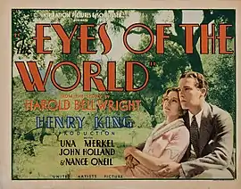 ![]() Lobby card from The Eyes of the World (1930) with Una Merkel and John Holland | |