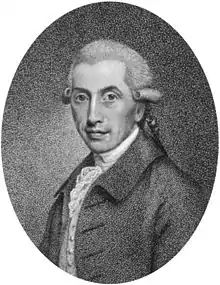 John Jebb was educated at Peterhouse, Cambridge, where he was elected fellow in 1761,[1] having previously been Second Wrangler at Cambridge in 1757.[2] He was a man of independent judgement, and he and his wife Ann warmly supported the movement of 1771 for abolishing university and clerical subscription to the Thirty-nine Articles.[3] In his lectures on the Greek Testament he is said to have expressed Socinian views. In 1775 he resigned his Suffolk church livings, and two years afterwards graduated M.D. at St Andrews. He practised medicine in London and was elected a fellow of the Royal Society in 1779. He and Ann continued to be involved in political reform.