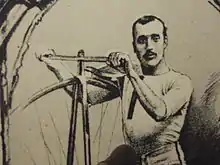 In the spring of 1876 John Keen travelled to New York with his bicycle.[4] By 1878 he was internationally reputed to be the fastest rider in the world, the professional champion of England [5] and his name appeared on advertisements (in 1879) for the Columbia bicycle manufactured in the USA which stated his achievement of 1 mile in 2 minutes and 43 seconds (22 mph).