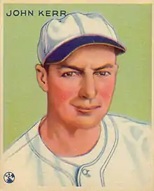John Francis Kerr (November 26, 1898 – October 19, 1993) was a professional baseball player. He played all or part of eight seasons in Major League Baseball between 1923 and 1934 with the Detroit Tigers, Chicago White Sox, and the Washington Senators in the American League, primarily as a second baseman.