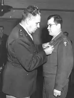 ![]() Lansdale is awarded the Legion of Merit by Major General Leslie Groves, the director of the Manhattan Project | |