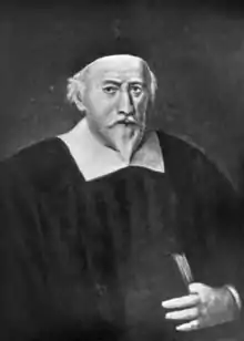 Livingstone married, 23 June 1635, the eldest daughter of Bartholomew Fleming, merchant, Edinburgh, and had a large family. One of his sons emigrated to America, and has left distinguished descendants. There are original portraits of Livingstone and his wife at Gosford, East Lothian, the seat of the Earl of Wemyss.[15] He married (in St Cuthbert's Church, Edinburgh) 23 June 1635, Janet (died at Rotterdam, 1693), eldest daughter of Bartholomew Fleming, an Edinburgh merchant, and Marion Hamilton, and had issue — John, born 30 June 1636, died 8 January 1639; William, merchant in Edinburgh, born 7 January 1638, buried 12 June 1700; Bartholomew, born 3 September 1639, died 24 September 1641; Agnes, born 20 September 1640, died 17 October 1641; Marion, born 10 October 1642 (married John Scott, minister of Hawick); Janet, born 28 September 1643 (married Andrew Russell, merchant, Rotterdam), died August 1696; John, born 20 August 1644, died October 1645; Agnes, born 18 August 1645 (married David Cleland, surgeon); James, merchant, Edinburgh, born 22 September 1646, died 1700; Johanna, born September died October 1647; Barbara, born 21 June 1649 (married James Miller, merchant); John, born 29 January, died 12 October 1652; Andrew, born August 1653, died 7 February 1655; Robert, ancestor of the Livingstons of Livingston Manor, New York, born 13 December 1654, died April 1725; Elizabeth, born 7 January 1657, died 31 October 1666.[16]