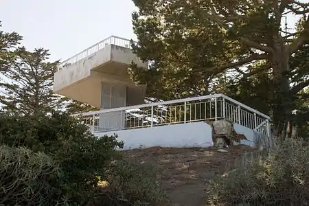 The Wilde Reservoir Overlook, on the eastern edge of the park at the intersection of Mansell Street and Visitacion Avenue, was completed and opened to the public in 1981.[23] The Wilde Reservoir was used to store tap water for the City of San Francisco, but after its abandonment, was used as a nocturnal dumping ground for trash.[31] The old walls of the reservoir were retained as a viewing platform and a 35-foot (11 m) tall tower was built in the center of it.[31] However, the tower was padlocked and has been closed to the public since the late 1990s.[18]