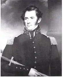 John McNeil Jr. (March 25, 1784 – February 23, 1850) was an officer in the United States Army. He distinguished himself in leading the bayonet charge which secured victory in the Battle of Chippewa. For his conduct in this battle, and in that of the Battle of Bridgewater, where he was severely wounded, he was successively brevetted as lieutenant colonel and colonel.[1][2] In 1824 he received the brevet rank of brigadier general in recognition of his superior service as a brevet colonel for 10 years. He later received appointment as Surveyor of the Port of Boston, a post he held from 1830 to 1841. The husband of Elizabeth Andrews Pierce, son-in-law of Governor Benjamin Pierce, and brother-in-law of President Franklin Pierce, after retiring McNeil lived at the Pierce family home in Hillsborough, New Hampshire. He died in Washington, D.C. on February 23, 1850 and was buried at Congressional Cemetery in Washington.