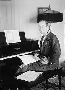 Subsequent performances included appearances in the Ziegfeld Follies of 1920, Ziegfeld's "Midnight Frolic" in 1920, and Irving Berlin's Music Box Revues of 1922 and 1923.[1][2] In the Ziegfeld Follies of 1920 he introduced the songs "Tell Me, Little Gypsy," "The Girls of My Dreams," and "The Love Boat."[2] In the Music Box Revue of 1923 he introduced songs including "One Girl" and "Little Butterfly" and joined with Florence Moore, Ivy Sawyer, Joseph Santley, Grace Moore and Frank Tinney to sing the novelty song "Yes, We Have No Bananas".[1][5] As of 1921, he reportedly was paid between $1,000 and $2,000 weekly by Ziegfeld.[6][7]