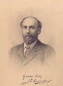 Carrodus was born on 20 January 1836, at Keighley, in the West Riding of Yorkshire. He took violin lessons from his father Thomas Carrodus, who was a barber and music-seller.[1] He made his first appearance as a violinist at the age of nine, and before the London public four years later.[2] He had the advantage of studying between the ages of twelve and eighteen at Stuttgart, with Bernhard Molique.[3][2] He also “ became a 'follower of Spohr', who expressed his admiration for the Englishman's playing.”[4]