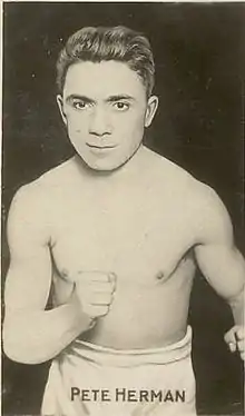 Six months after taking the American Flyweight Championship, on September 23, 1921, Buff won the World Bantamweight Championship by defeating Pete Herman in Madison Square Garden in a fifteen-round points decision. Buff took ten of the fifteen rounds, with only four given to Herman and one even. By the fifteenth round, Herman was exhausted and Buff reigned blows on him without Herman putting up an effective defense.[14] Buff was remarkable for taking a world title at the advanced age for a boxer of 32.[1][4]