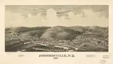 Perspective map of Johnsonville from 1887 by L.R. Burleigh with list of landmarks