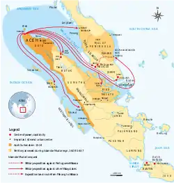 On the northern part of Sumatra around the same period, Aceh Sultanate was beginning to gain substantial influence over the Straits of Malacca. With the fall of Malacca to Christian hands, Muslim traders often skipped Malacca in favour of Aceh or also of Johor's capital Johor Lama (Kota Batu). Therefore, Malacca and Aceh became direct competitors.