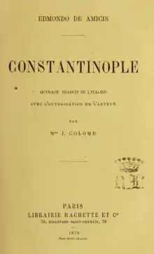 After her marriage on 14 November 1859 to Louis-Casimir Colomb (1834-1890), an academic, illustrator and writer, she signed her works "Mme J. Colomb" or "Mme Louis-Casimir Colomb". Her books for young people were published in the "Bibliothèque des écoles et des familles" (Library of schools and families) collection of Hachette editions in Paris.[3] Instead of featuring the usual orphans or unfortunate teenagers common in late 19th century works of juvenile fiction, Colomb constructed characters with minds of their own who often intelligently challenged adult authority. She also published Les Béatitudes, a versified version of the Beatitudes, with music by César Franck.[2]