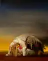 Joseba Eskubi (born 1967) is a Spanish artist who lives and works in Bilbao, Spain. He works with soft, amorphic and organic forms with images of decay, and his paintings incorporate surrealism. His work is often a single organic figure, and his works are created with mixed media (oil painting, acrylic, plasticine, photography).