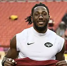 On September 5, 2020, Adams was waived by the Jets and signed to the practice squad the next day.[41][42] He was elevated to the active roster on September 12 for the team's Week 1 game against the Buffalo Bills and reverted to the practice squad on September 14.[43][44] He was again elevated to the active roster on September 19 for the team's Week 2 game against the San Francisco 49ers and reverted to the practice squad on September 21.[45][46] He was signed to the active roster on November 24.[47]