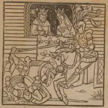 Finally, Jordain returns to Blaye and besieges it. Advised by his nephew Foucart to attack while the besiegers are weary from travel, Fromont launches a night sally and is captured. His demoralized men surrender and the inhabitants recognise their lawful lord. Fromont, Foucart and the two serfs are dragged to death. A messenger from Constantinople arrives with the news of the king's death. Aly and Gaudisce go to Constantinople to rule it. After some time, King Mark dies. Jordain gives Blaye to Renier and he and Oriabel go to rule Marcasille.[20]