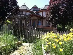 It is a two-story frame house, built to a T-shaped plan with two symmetrical octagonal towers. The towers have conical roofs topped by "witches caps" and wood spires with finials. It was home of Judge Henry Lamdin Benson during 1898 to 1921. Benson was Speaker of the Oregon House of Representatives. He served as a State Supreme Court Justice from 1915 until his death in 1921.[2]