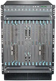 By 2004, Juniper controlled 38% of the core router market.[35] By 2007, it had a 5%, 18% and 30% share of the market for enterprise, edge and core routers respectively.[36] Alcatel-Lucent was unsuccessful in challenging Juniper in the core router market but continued competing with Juniper in edge routers along with Cisco.[37][38]