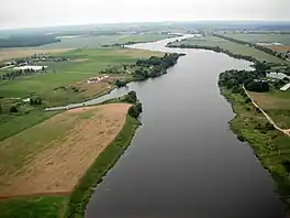The Juodkiškiai Reservoir is an artificial lake in Kėdainiai District Municipality, central Lithuania. It is located 2 kilometres (1.2 mi) east from Kėdainiai, next to Taučiūnai village.[2] It was created in 1980, when a dam on the Obelis river had been built next to Juodkiškiai hamlet.[1] In 1995, the dam was reconstructed and a small hydroelectric plant (of 510 kW) has been built.