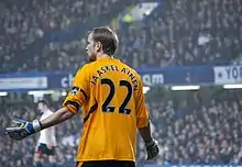 In October 2006 he saved two penalties in one match from Blackburn Rovers' Benni McCarthy and Jason Roberts to secure a 1–0 away win.[4] On 13 May 2007, Jääskeläinen received Bolton's "Player of the Year Award" and also the "Players' Player of the Year Award" after helping Bolton secure a UEFA Cup spot for only the second time in their history.[5] Despite much speculation linking him with a move away from Bolton when his contract expired following the 2007–08 season, Jääskeläinen agreed a new four-year contract on 11 June,[6] which he signed on 9 July.[7]