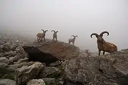 The representative mammal is the endangered West Caucasian tur. It is found in two separate sub-species in the Chegem and Bezengi gorges, representing the Western Caucasus and Dagestan. Brown bears are very common. Other common animals are fox, jackal, wild cat, martens, ermine, weasels, Altai squirrel, hare, and several species of rodents, shrews, and bats. The only fish found in the streams are brook trout.[5]