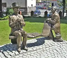 The Cabaret was founded and led by composer Jerzy Wasowski (1913-1984) and writer Jeremi Przybora (1915-2004), the two older gentlemen in the cabaret's title.[1] Wasowski wrote the music, and Przybora, the TV script.[2] The cabaret focused on two Bourgeoisie characters, Pan A and Pan B (Mr. A and Mr. B) "in dinner jackets, bowler hats, and with carnations in their button holes," who tried to find themselves in the new world of communist People's Republic of Poland, invariably poking fun at the changing reality.[3][4] Their humor has been described as "absurdist, sophisticated and elegant".[1] Music formed an important element of the cabaret's style, leading some critics to assert that the show was less of cabaret and more of a "musical theatre of absurd".[5] Many top Polish actors of that time played in the cabaret as guests. Most notable performers included Mieczysław Czechowicz, Edward Dziewoński, Wiesław Gołas, Kalina Jędrusik, Irena Kwiatkowska, Barbara Krafftówna, and Wiesław Michnikowski.[4][6][7]